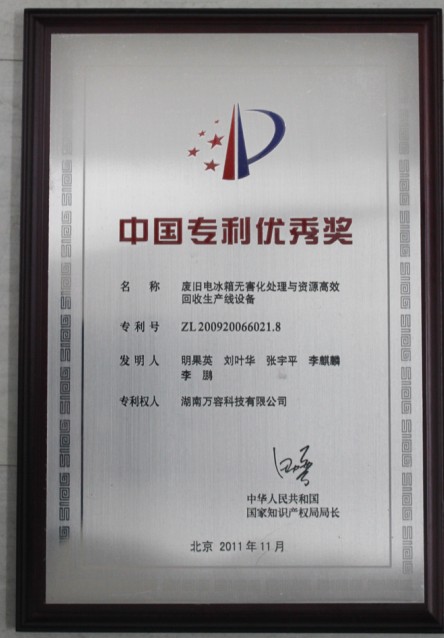 喜讯:beats365官网在线平台的实用新型专利废旧电冰箱无害化处理与资源高效回收生产线设备被授予第十三届中国专利优秀奖。beats365官网在线平台该项获奖专利自2009年底实施推向市场以来,生产并销售给有关行业企业...