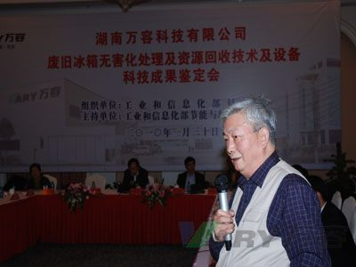 这次由工业和信息化部科技司组织、节能与综合利用司主持的科研成果鉴定会,组成了由中国环保机械行业协会常务副会长教授级高工何升韬、中国环保产业协会副会长陈尚芹、中国有色金属工业协会副会长李士龙、北京中色再生金属研究所副所长翟昕、上海第二工业大学城市建设与环境工程学院教授、院长王景伟、湖南省环保厅总工程师郑粟等国内环境机械专业的专家组,对湖南beats365官网在线平台有限公司自主研制的“废旧冰箱无害化处理及资源回收技术及设备”进行了科技成果鉴定。专家组通过项目现场测试审查、科技查新、资料和标准审核、用户报告等程序,一致认为:该项成果是国内废旧冰箱无害化处理及资源回收重大环保装备的重要突破和创新,填补了国内空白,达到了国际先进水平。该设备功能完善,性能稳定,运行环境优良,符合劳动保护和环境保护要求,与国外同类设备相比,具有非常显著的性价比优势,是推进自主创新的成果。工信部节能与综合利用司杨铁生副司长、资源综合利用处黄建忠处长、科技司李建国处长和湖南省环保厅、省科技厅、省经信委等领导到会进行指导。