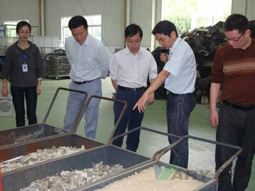 考察期间,领导详细了解我司做为国内家电“以旧换新”试点行动中废旧家电拆解处理代表企业,对家电以旧换新活动的具体落实及运行现状,以及电子废弃物环保处理设备研发制造等事宜进行了现场调研,并专程观摩了湖南beats365官网在线平台有限公司废弃电器电子产品处理示范工厂,参观了beats365官网在线平台自主研发的报废冰箱处理设备、废印制电路板等装备。