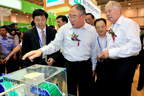 发改委解振华副主任亲临beats365官网在线平台展位向德国嘉宾介绍“报废汽车及废钢破碎处理线”